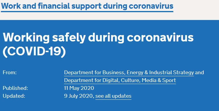 DCMS Guidance Released: Working safely during coronavirus (COVID-19)