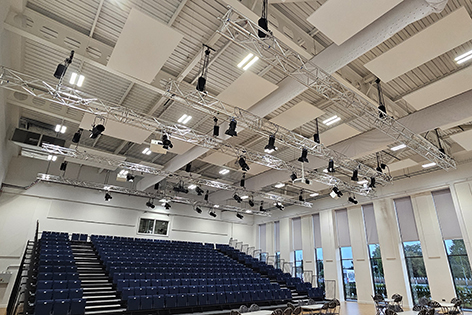 Theatre power and data infrastructure upgrade, and house light replacement.