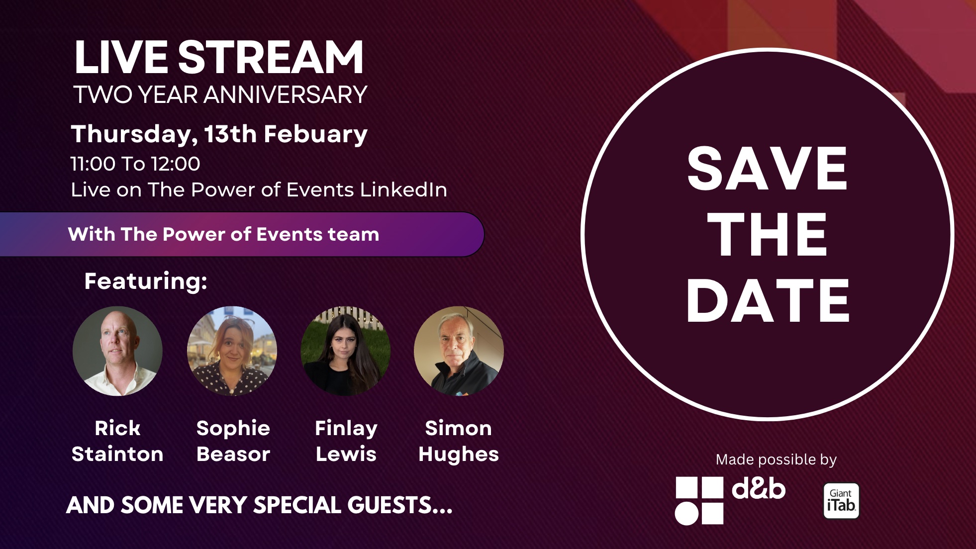 Join The Power of Events online on Thursday 13th February at 11.00am on its Linkedin channel for one hour, to hear contributions from over 20 industry leaders from across the sectors, including many supporters and partners and the core team.